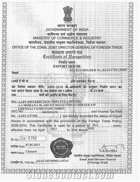 Aapt Distribution Pvt. Limited is an Export House status holder company which is engaged in export of processed Granite blocks/slabs over a decade and we established ourselves as one of the very few suppliers from India supplying Blocks, Slabs, Tombstones and Tiles under one roof.